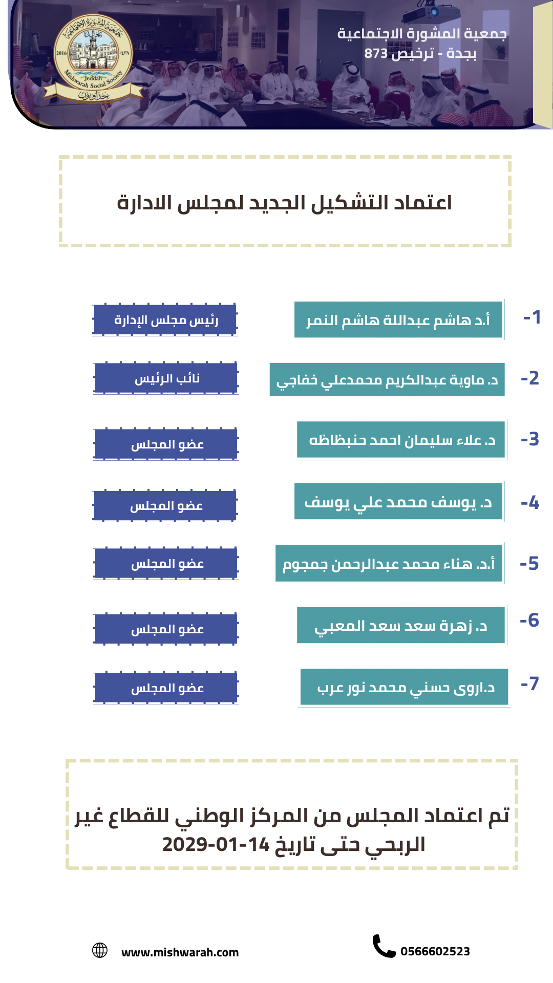 يتقدم رئيس وأعضاء مجلس الإدارة والجمعية العمومية لجمعية المشورة الاجتماعية مشاهده المزيد